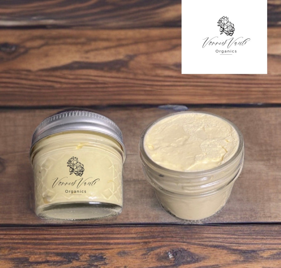 Hand whipped scentless body butter for sensitive skin. This cream is comprised of house steeped essential oils, honey and other organic compounds. Perfect for protecting and moisturizing skin. Apply moisturizing cream after washing or before bed.